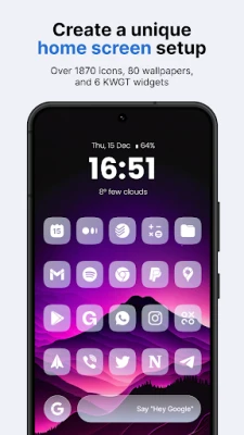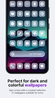 Introducing our squircle android icon pack - Ares Arctic. A unique and stylish collection of minimal white icons on a semi-transparent white squircle, perfect for any modern Android phone. With a focus on simplicity and elegance, these icons feature clean lines and a minimalist design that will elevate the look and feel of your homescreen and app drawer. The pack includes over 5,444 icons, 90 wallpapers, and 7 KWGT widgets to complete the look of your homescreen. For the price of one app, you get content from three different apps! Our Ares Arctic icon pack will take your homescreen design to the next level!