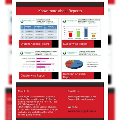 • Analyze - The KnowledgeCurry app runs an in-depth analysis based on learning paths adopted by the student. View a detailed analysis of your progress and performance to plan better and improve your performance.