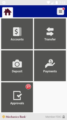 Mechanics Bank Business Mobile Banking is a free service for our clients. Certain fees for performing banking transactions and any optional Services may apply.