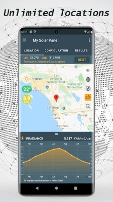 My Solar Panel is your assistant which offers you a various palette of parameters for any desired location on the map. It provides: