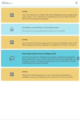Wave Engagement is a tailor-made, flexible organizational learning platform designed to support your team through meaningful, face-to-face engagement and professional development. Once a user has set up an account under their organization's campaign, the Wave Engagement app will alert and walk the user through connecting activities, events, and surveys with their team members.