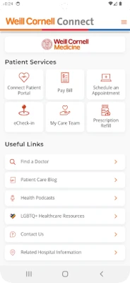 If you are already a patient of a Weill Cornell Medicine physician, log in to the app using your Weill Cornell Connect account and take advantage of these helpful features: